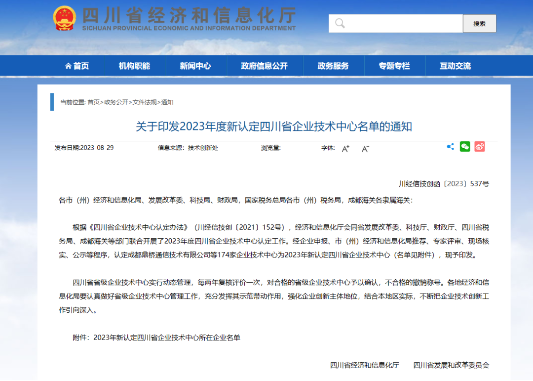 近日,四川省经济和信息化厅、四川省科技厅等六部门联合发布《关于印发2023年新认定四川省企业技术中心名单的通知》,公布了全省新认定的省级企业技术中心名单。升拓检测企业技术中心顺利通过“四川省企业技术中心”认定。